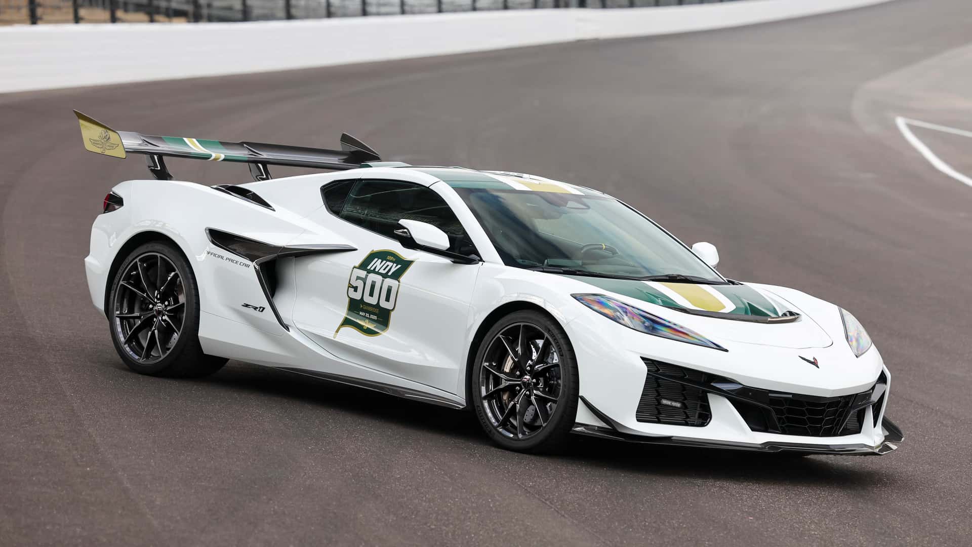 Chevrolet has provided Indy 500 pace cars exclusively since 2002, and they’ve been Corvettes since 2017. Former football pro and Good Morning America host Michael Strahan is the celebrity guest pace-car driver this year—a strong choice, given that he’s a huge car enthusiast with a nice collection. The pace car wears a classy livery of green and gold over white, and naturally, it gets the ZR1’s Carbon Aero package, for maximum downforce.